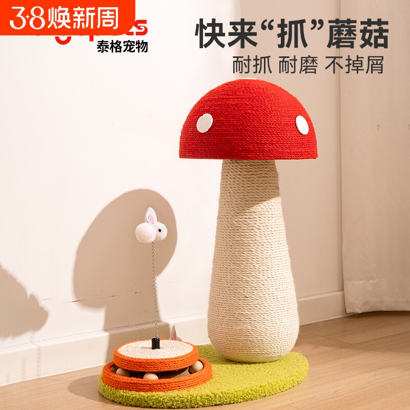 红蘑菇猫抓板剑麻耐抓不掉屑加大号立式猫抓柱麻绳磨爪玩具猫爬架