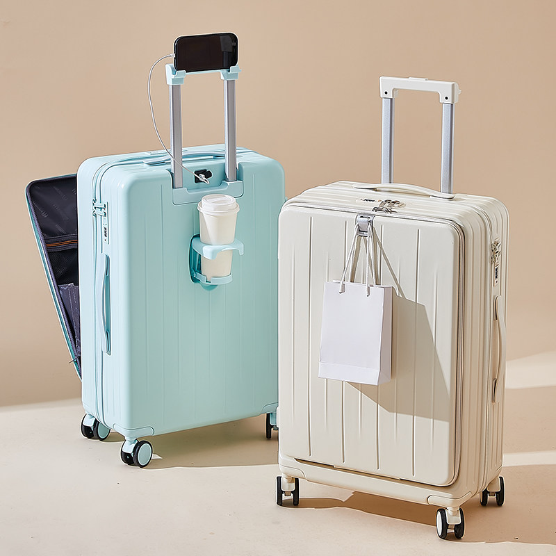 SGG前开口行李箱万向轮拉杆箱多用旅行箱女20寸多功能商务登机箱