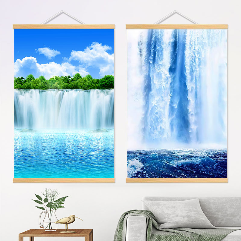 流水生财大瀑布装饰画玄关入户简约客厅中堂山水风水招财贴画墙纸