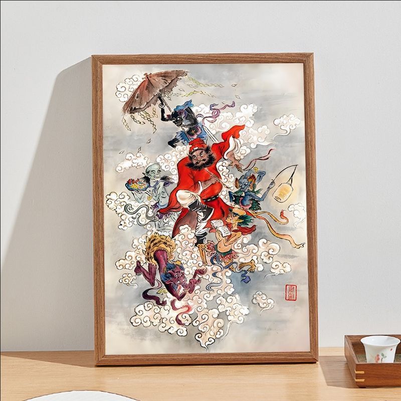 风水招财钟馗引福门神画像丝绸挂画装饰卷轴风水画山水画字画礼品