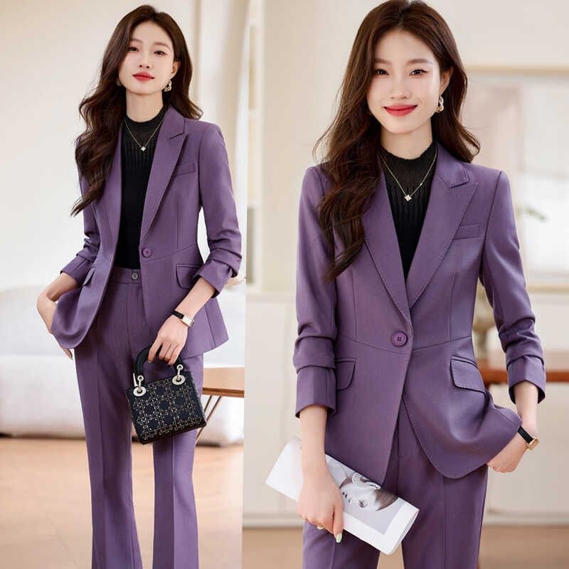 春秋冬气质显白高端粉紫色职业西装外套上衣正装马甲直筒裤套装女