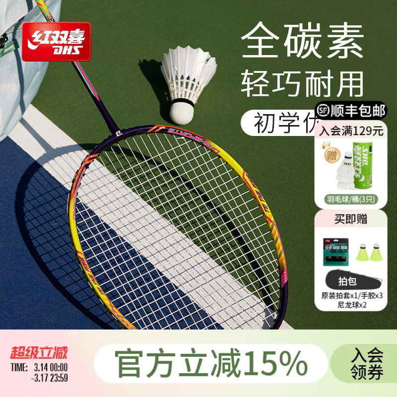 红双喜官方旗舰店 羽毛球拍单拍双拍STAR系列碳素耐打拍成人初学