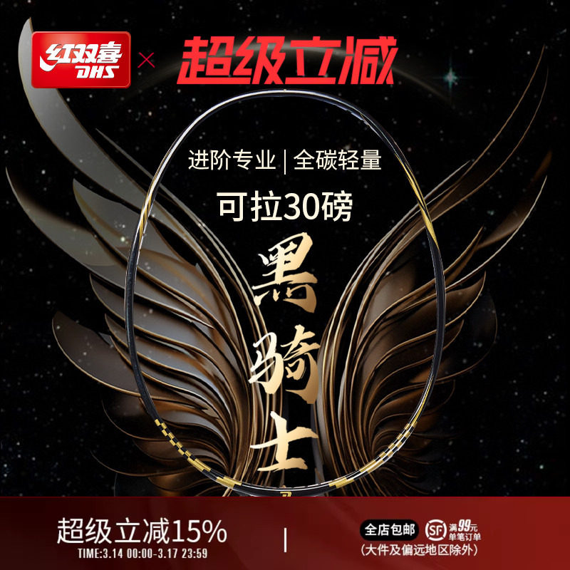 红双喜官方旗舰店 黑骑士羽毛球拍单拍轻量4U全碳素进阶专业成人