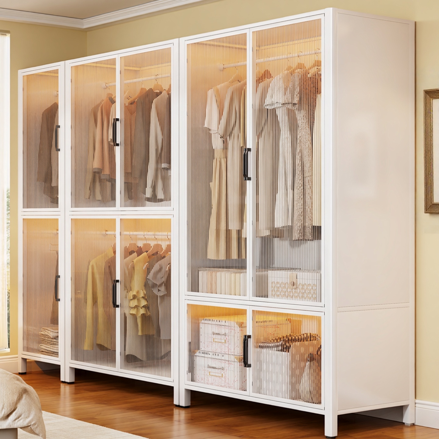 衣柜一体组合家用卧室衣帽间步入简易组装金属小型衣橱钢架开放式