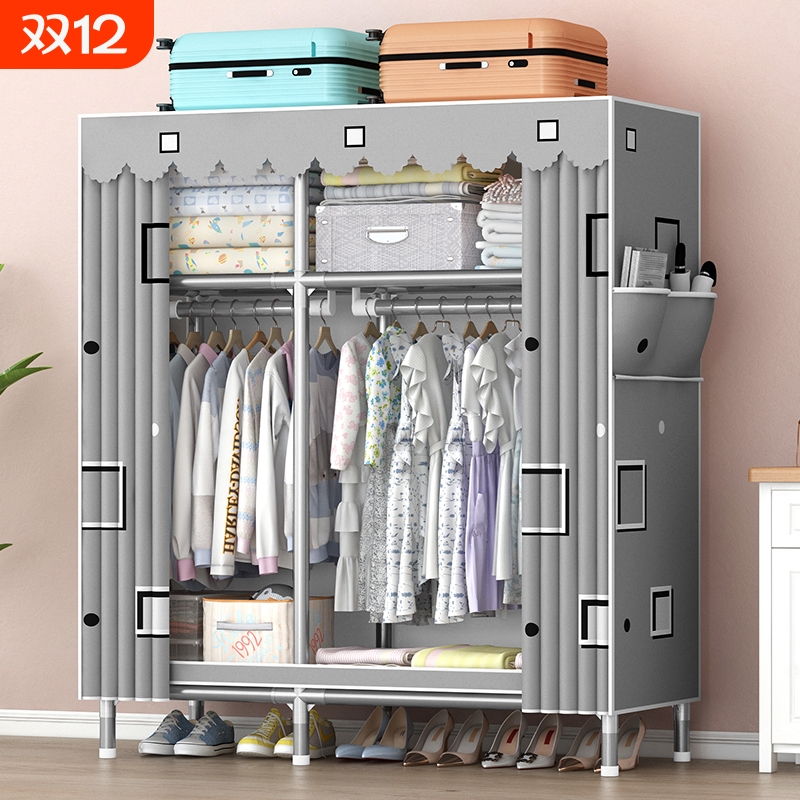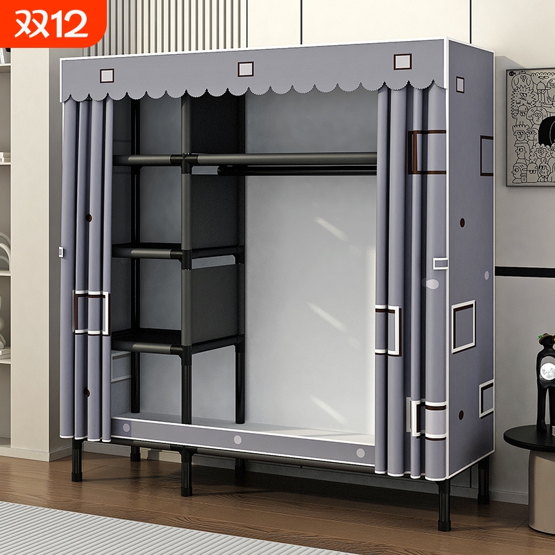 布衣柜家用卧室全钢架加粗加厚结实耐用出租房收纳柜组装简易衣橱