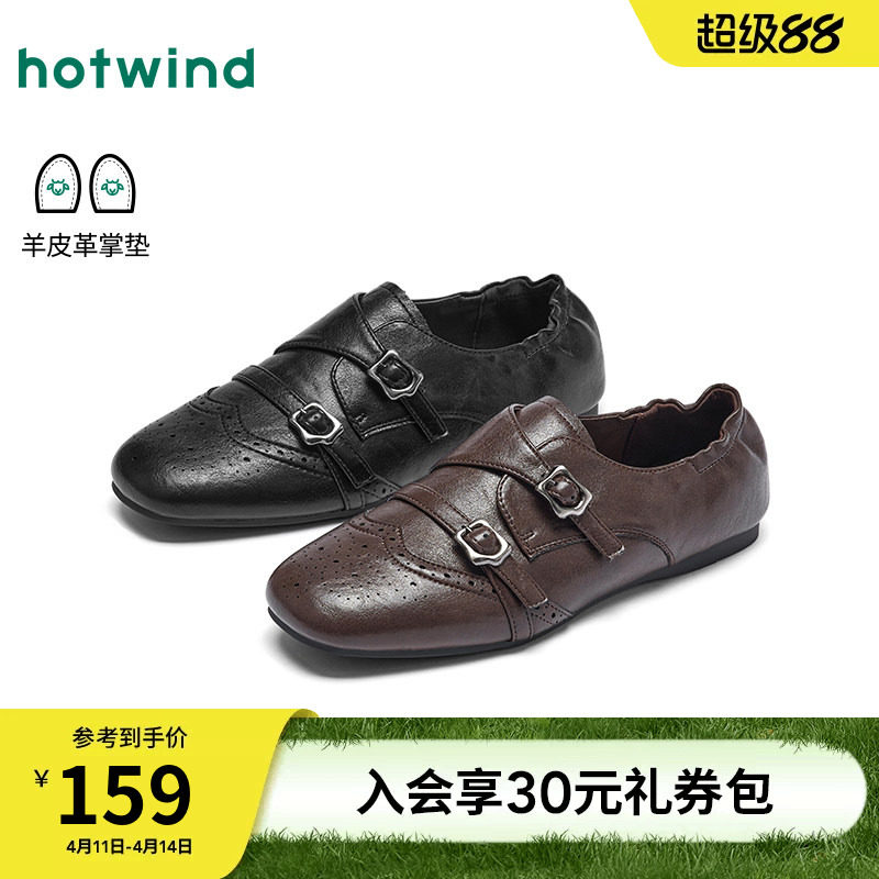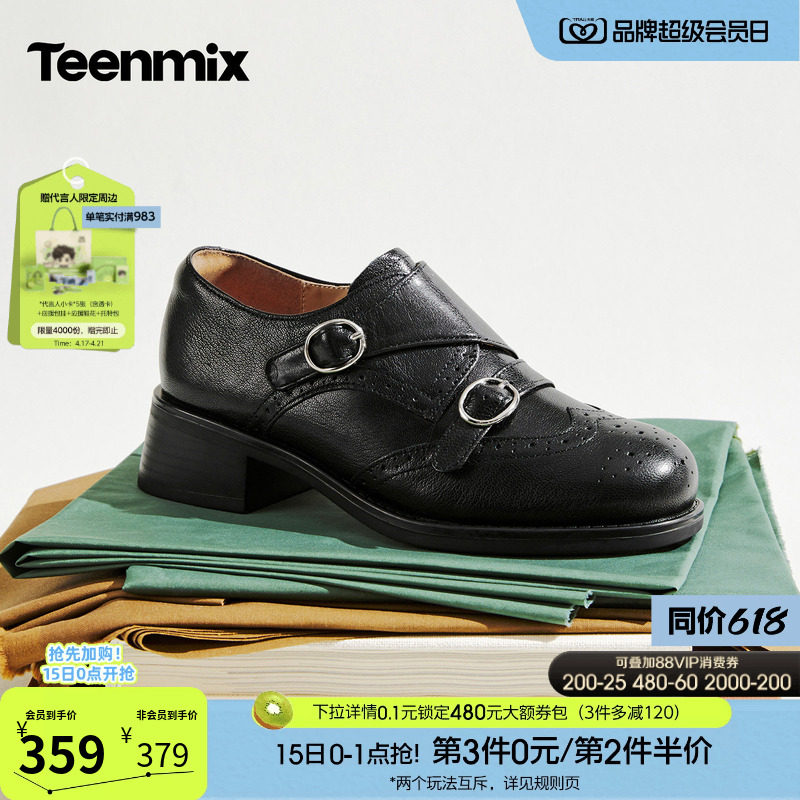 15mins英伦风复古雕花小皮鞋女2026新款黑色双扣带乐福鞋百搭单鞋
