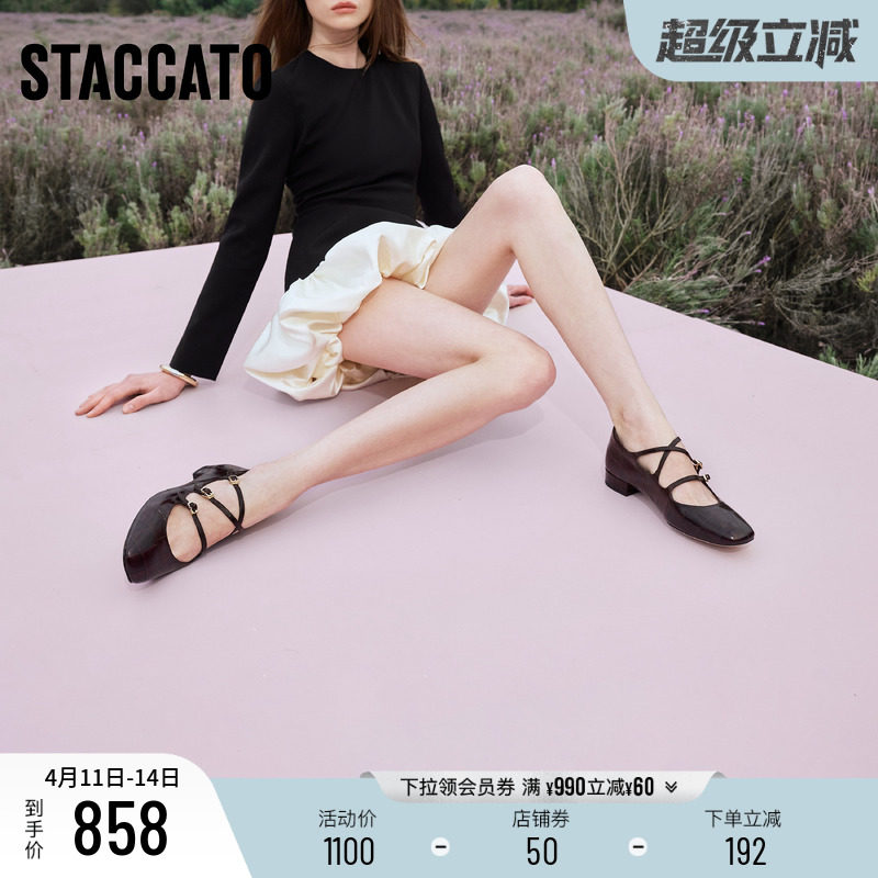 思加图新款爱丽丝玛丽珍鞋复古法式低跟单鞋小皮鞋女鞋EUE04AQ6B