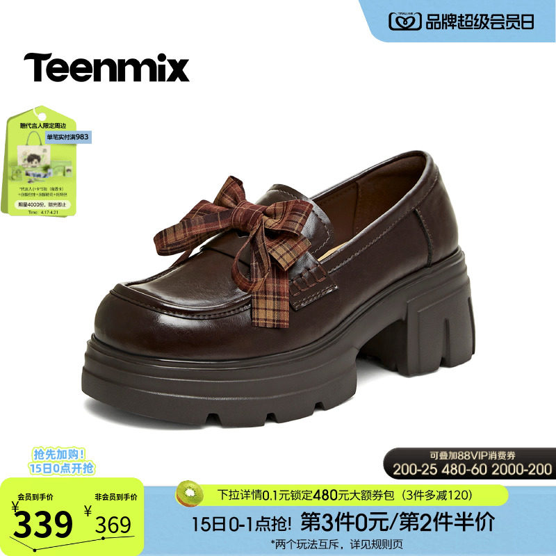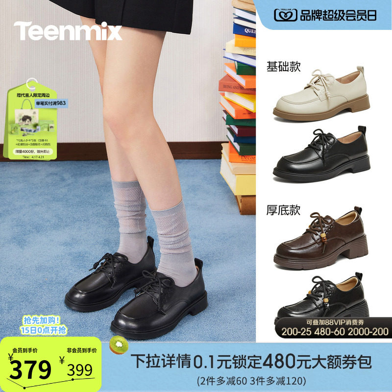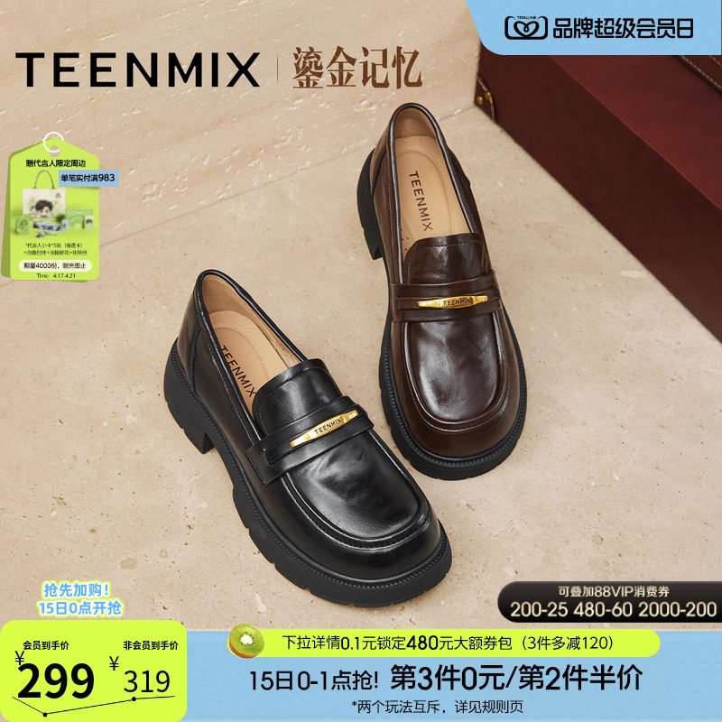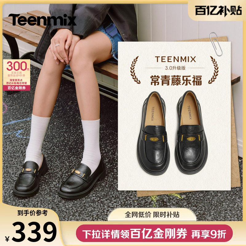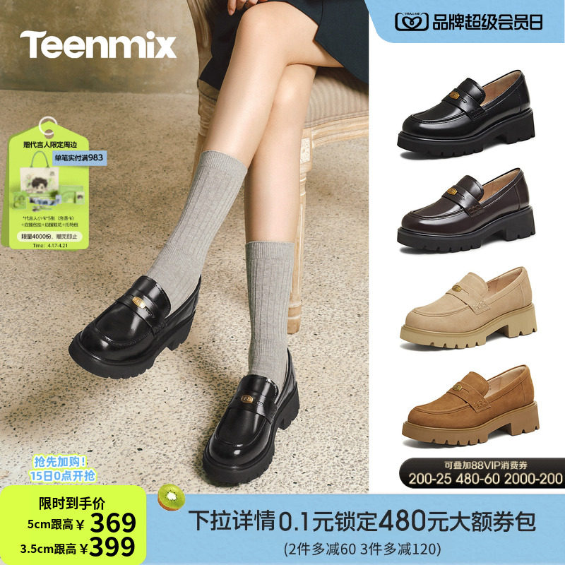 天美意厚底学院英伦乐福鞋复古单鞋女一脚蹬软底小皮鞋2026春新款