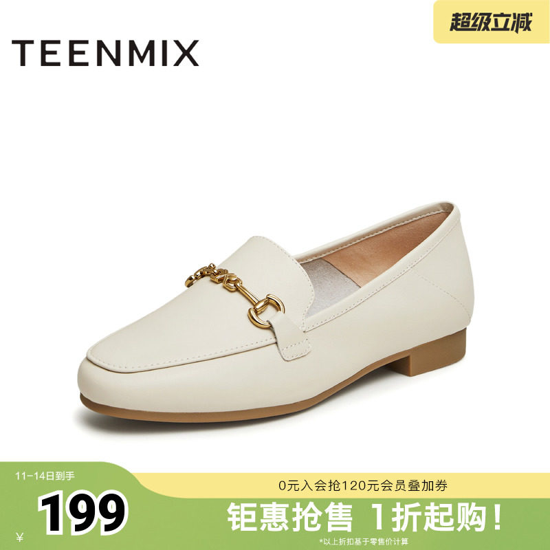 天美意英伦学院平底乐福鞋复古单鞋女一脚蹬软底小皮鞋2026春新款