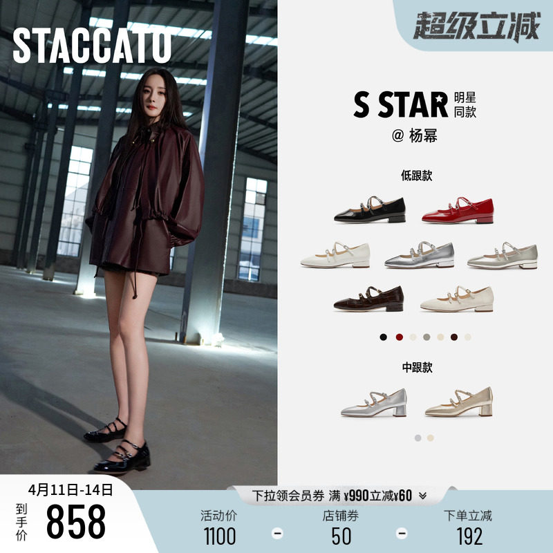 杨幂同款思加图新款爱丽丝玛丽珍鞋复古法式单鞋红色小皮鞋女鞋子