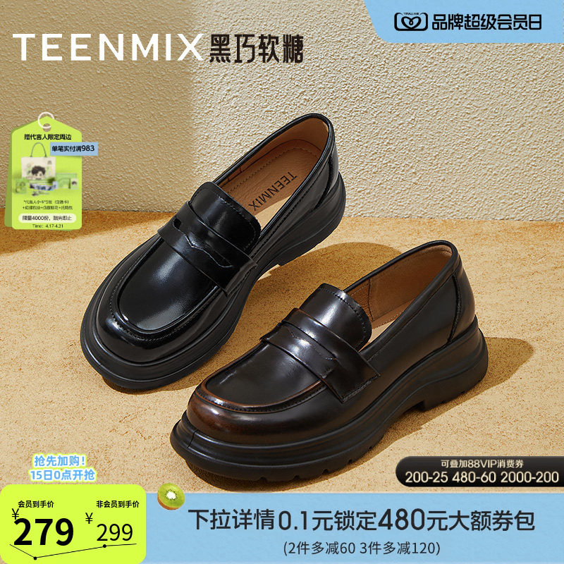 天美意芝士分子厚底休闲英伦乐福鞋复古单鞋女新款一脚蹬小皮鞋子