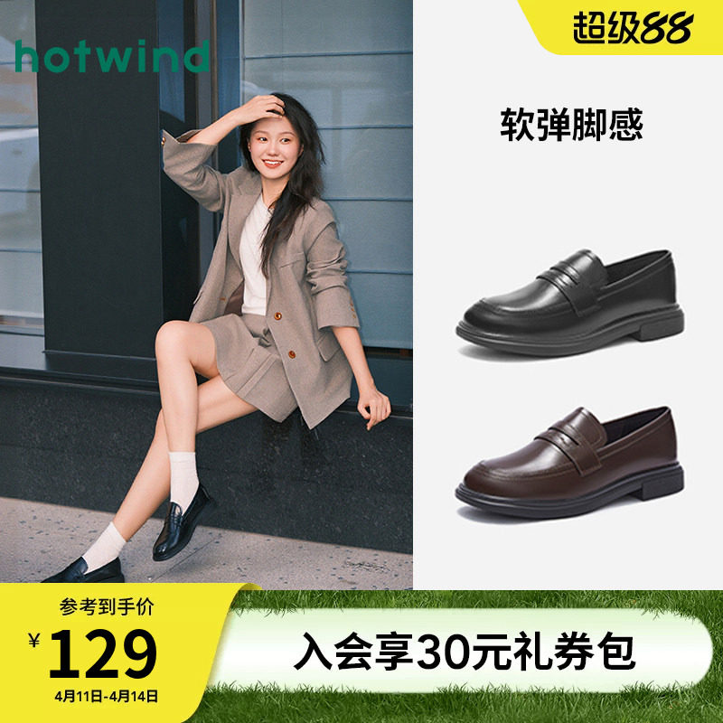热风乐福鞋女款2026年春季新款软底单鞋复古英伦风黑色小皮鞋女鞋