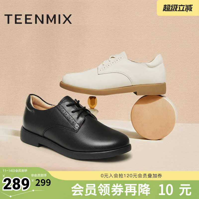天美意英伦小皮鞋平底鞋女乐福鞋系带复古单鞋春新款CCJ50AM4奥莱