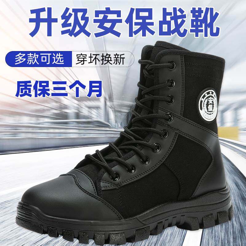 新式作战靴男保安高帮透气战术秋冬黑色加绒安检帆布训练鞋军战靴