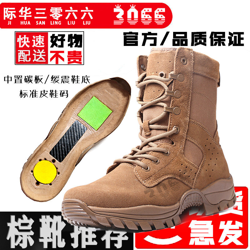 际华新式棕色作战靴男夏碳板作战鞋超轻高帮耐磨训练靴真皮登山鞋