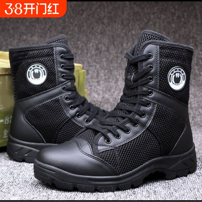 新式户外超轻耐磨战靴男女安检鞋夏季网眼大码拉链作战训靴保安靴