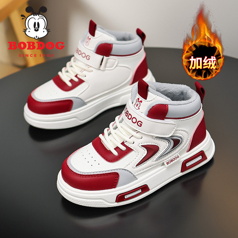 巴布豆童鞋男童高帮棉鞋2025冬季新款加绒保暖儿童运动鞋女童板鞋