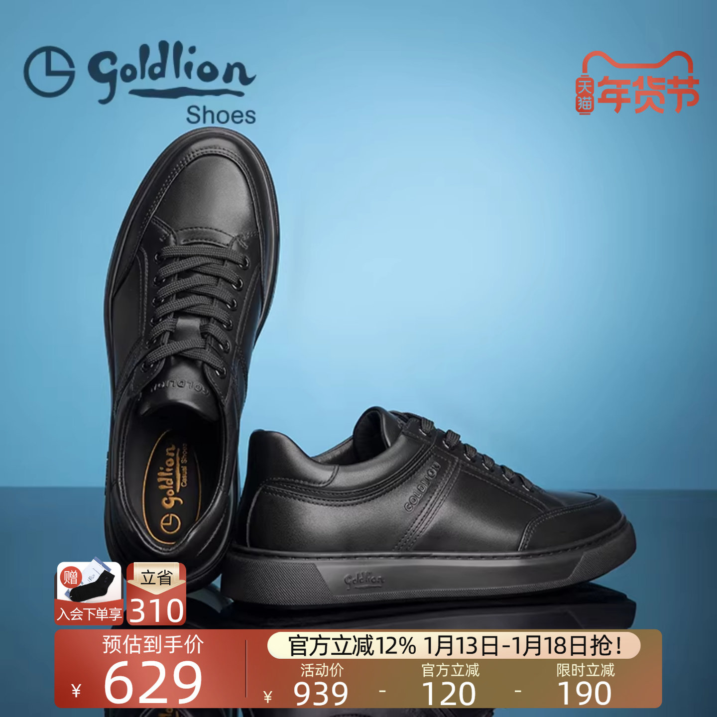 金利来男鞋官方正品秋冬新款黑色商务休闲鞋男士增高真皮运动板鞋
