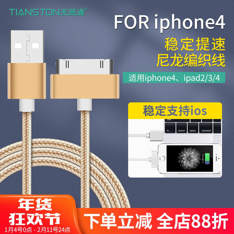 适用苹果4数据线4s充电线四iphone4s冲电手机ipad2平板3快充1一套ipod老款宽口ipone宽头ip4加长i4正品touch4