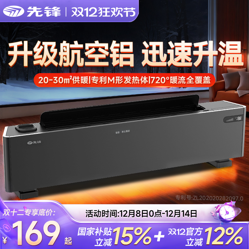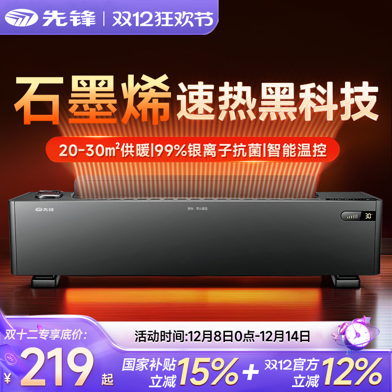 先锋踢脚线取暖器家用节能石墨烯电暖气神器卧室大面积暖风机241