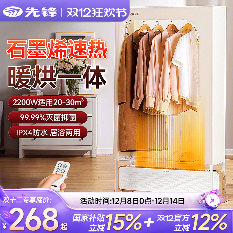 先锋干衣取暖器家用踢脚线电暖气防水速热烘衣服干衣机电暖器烘干