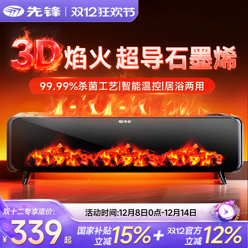 先锋壁炉取暖器仿真碳火焰石墨烯电暖器风机家用客厅大面积电暖气