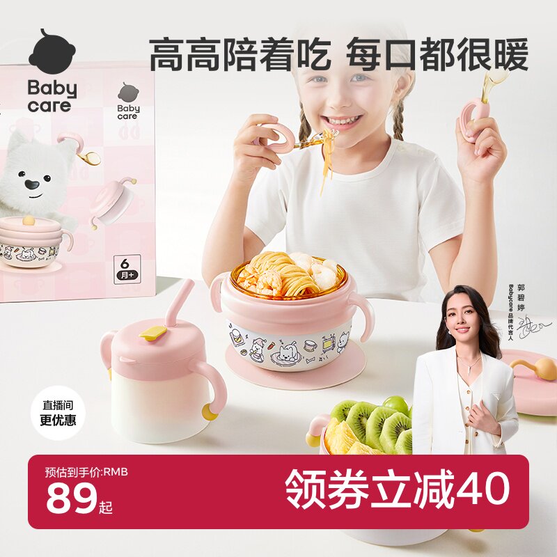 babycare宝宝辅食碗婴儿童专用注水保温吸管吃饭喂水工具餐具礼盒