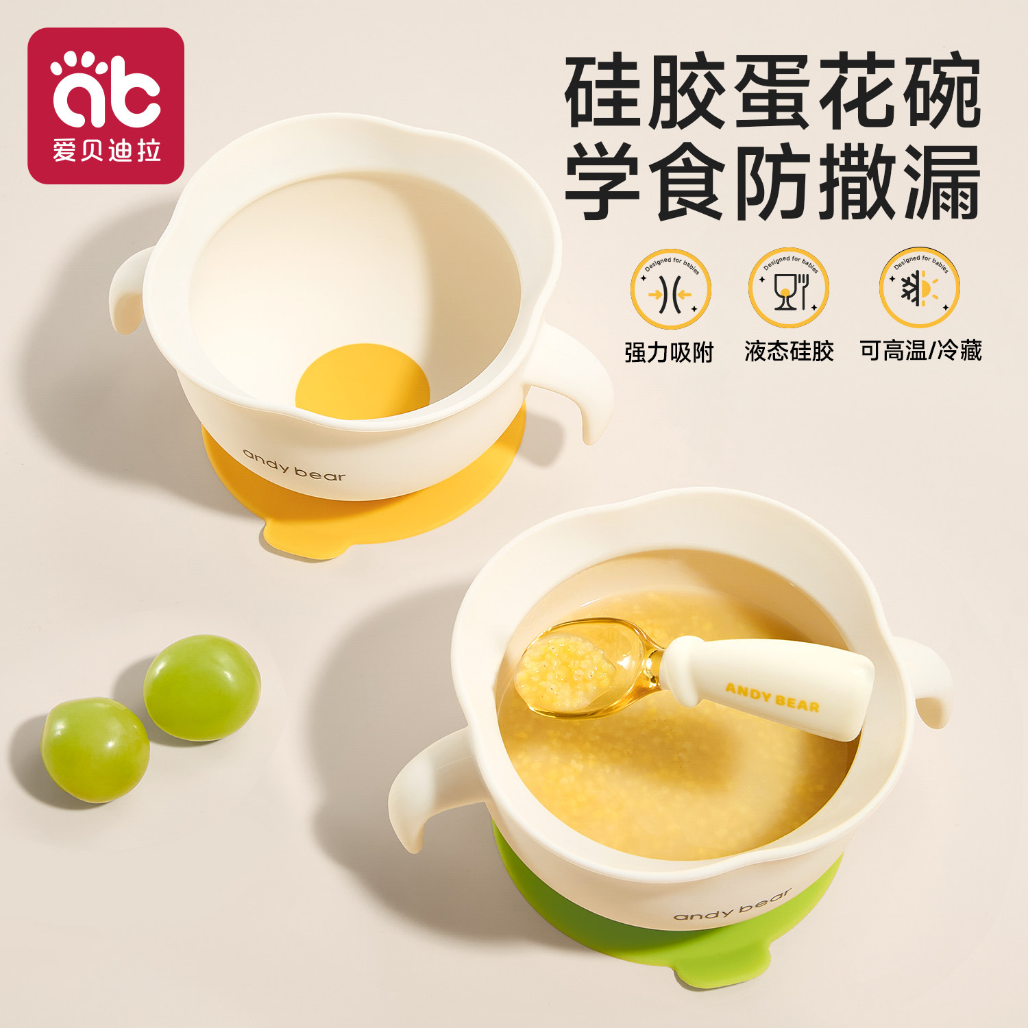 科巢宝宝辅食碗鹰嘴蛋花碗自主进食婴儿吃饭专用吸盘硅胶儿童餐具