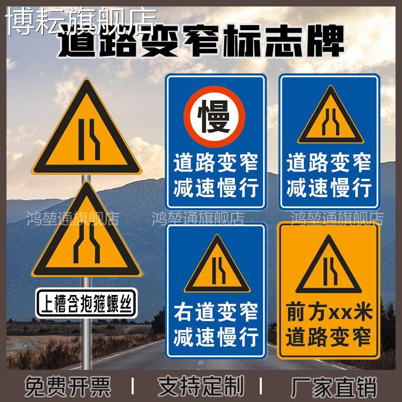交通标志牌道路变窄三角左道右道两边变窄窄桥反光标识牌铝板定制