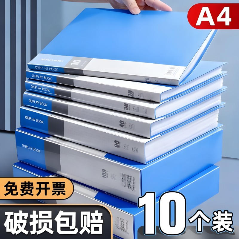 文件夹袋资料册a4透明插页资料收纳册办公用品资料夹档案加厚合同试卷卷子分类收集册大容量