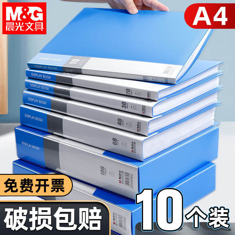 100页晨光资料册a4插页文件夹40收纳档案夹多层60活合同透明插学生用办公用品分类蓝色试卷歌谱奖状收集袋