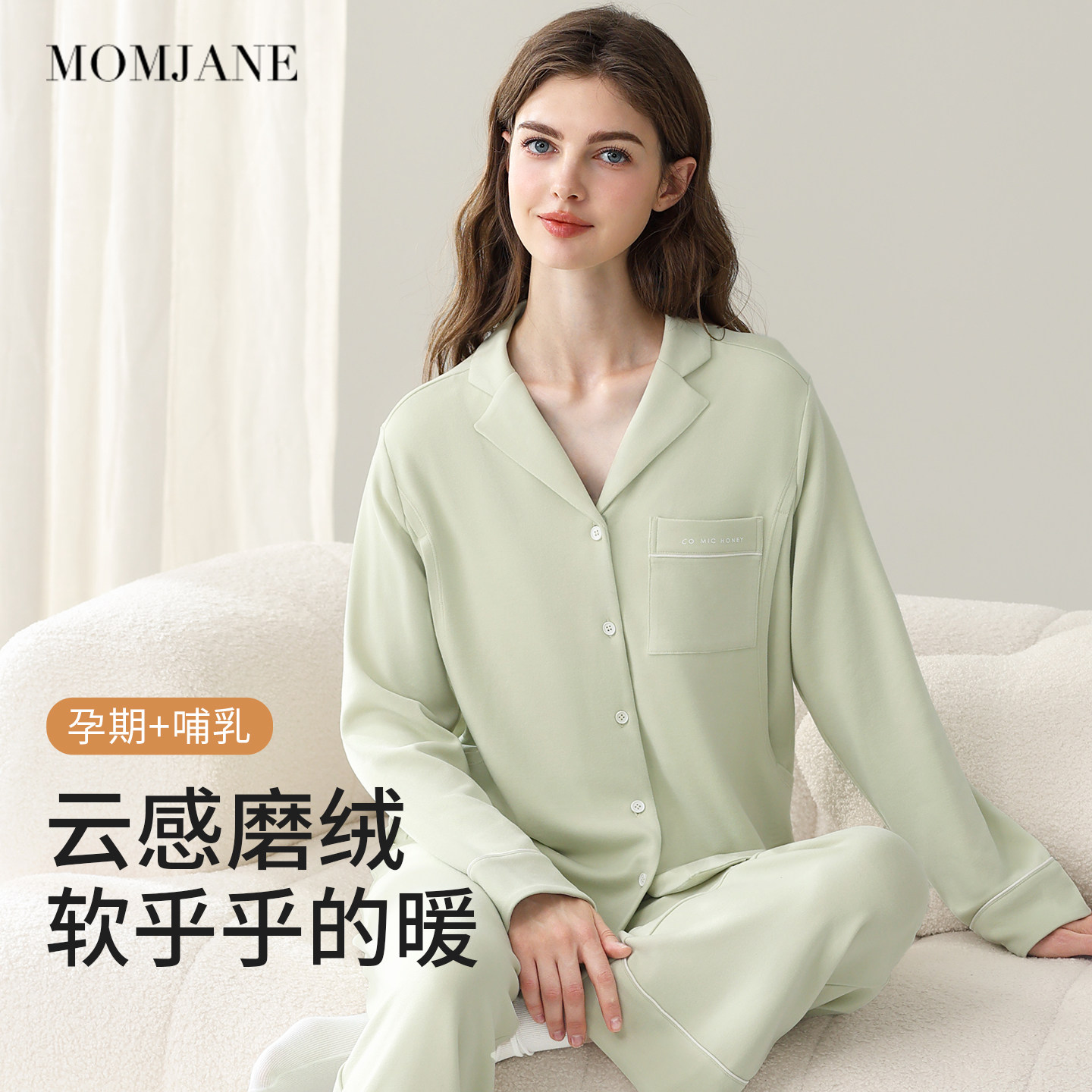 MAMILINE抑菌防螨睡衣女家居服半边绒孕妇睡衣月子服套装秋冬加厚