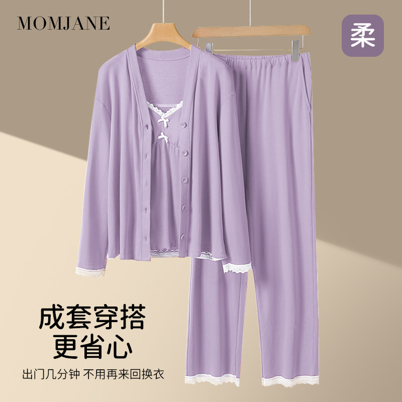 莫代尔孕妇睡衣月子服产后喂奶哺乳睡衣睡裤怀孕期母婴家居服套装
