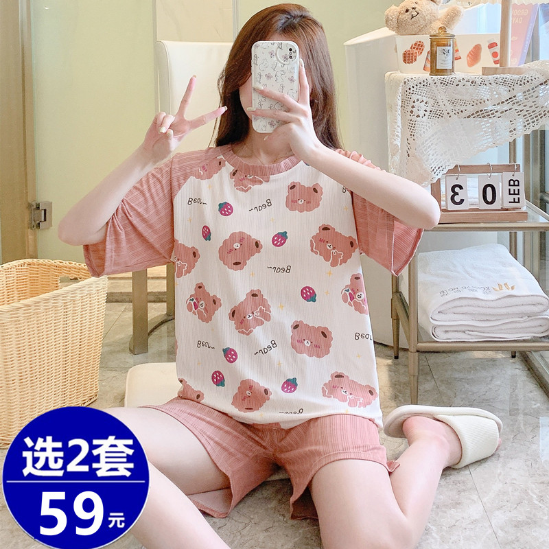 孕妇睡衣月子服夏季薄款产后纯棉怀孕期哺乳哺乳夏装两件式草莓熊