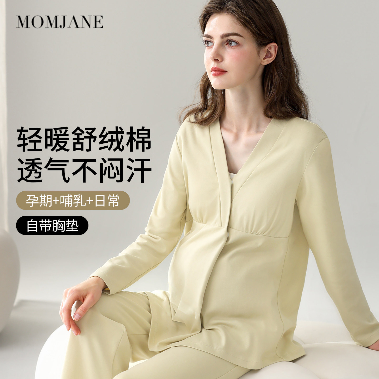 纯孕妇秋衣秋裤套装棉产后保暖哺乳衣棉毛衫睡衣产妇内衣月子服冬