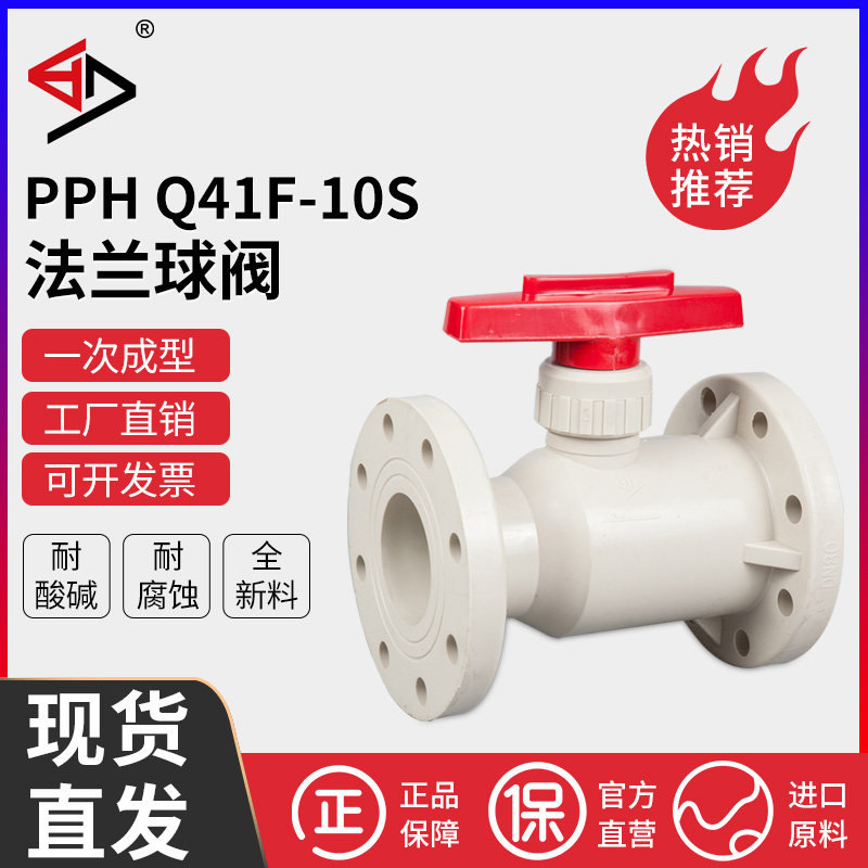 宝蒂PPH法兰球阀塑料耐腐蚀耐酸碱PPR直通式聚丙烯Q41F-10S