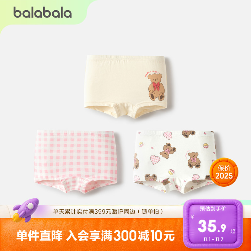 巴拉巴拉童装宝宝内裤平角女童三角短裤儿童四角裤男童新款三条装