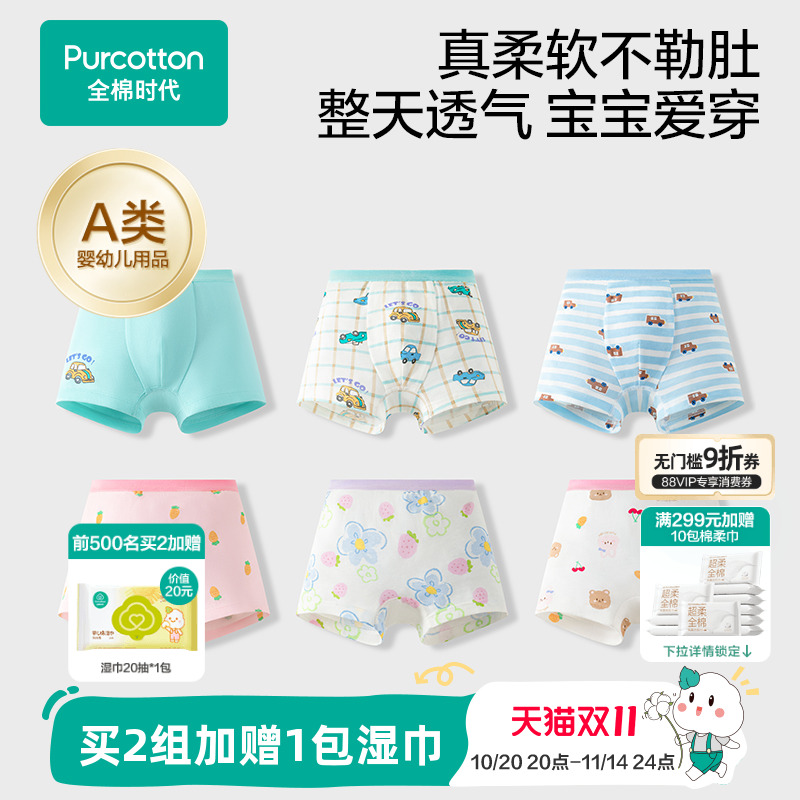 全棉时代2条装纯棉a类儿童内裤男女孩四角裤宝宝三角透气小内裤