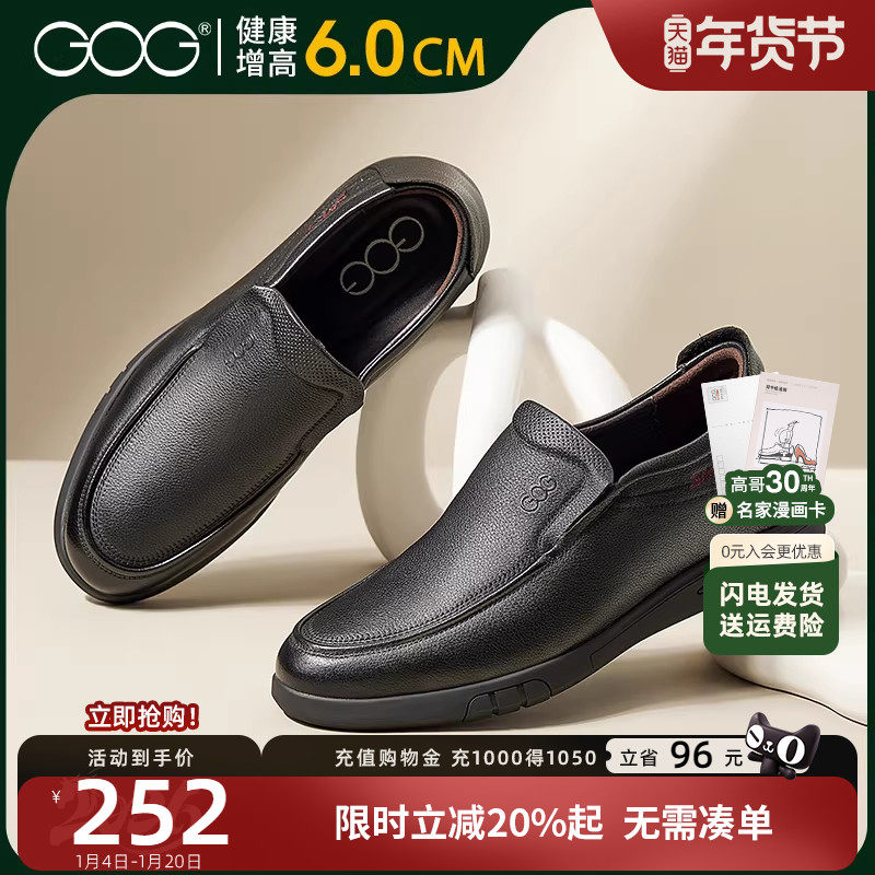 2024秋季新款皮鞋男内增高一脚蹬真皮大码中老年镂空爸爸休闲男鞋