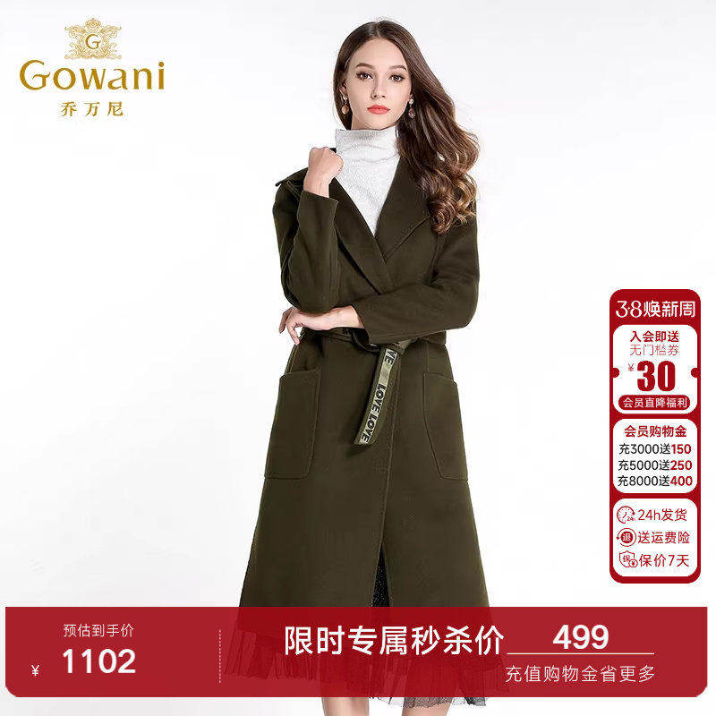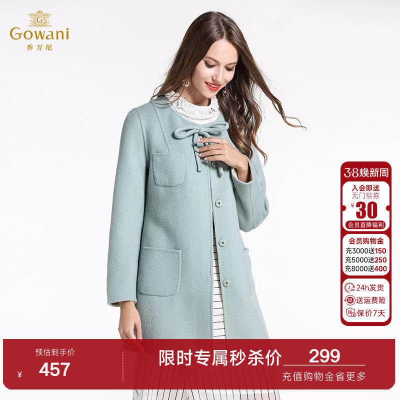 乔万尼清仓冬季羊毛呢子大衣女时尚气质双面呢修身中长款毛呢外套