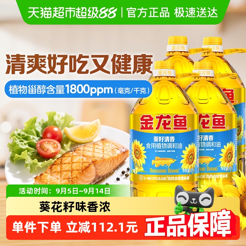 金龙鱼葵花籽食用植物调和油5L*4瓶 清香型食用油家用大桶粮油