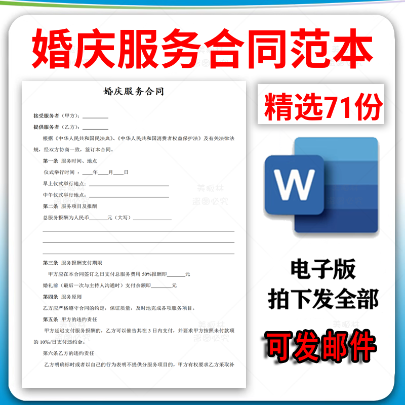 婚庆公司酒店婚礼宴会策划as婚车婚纱摄影服务合作合同模板协议